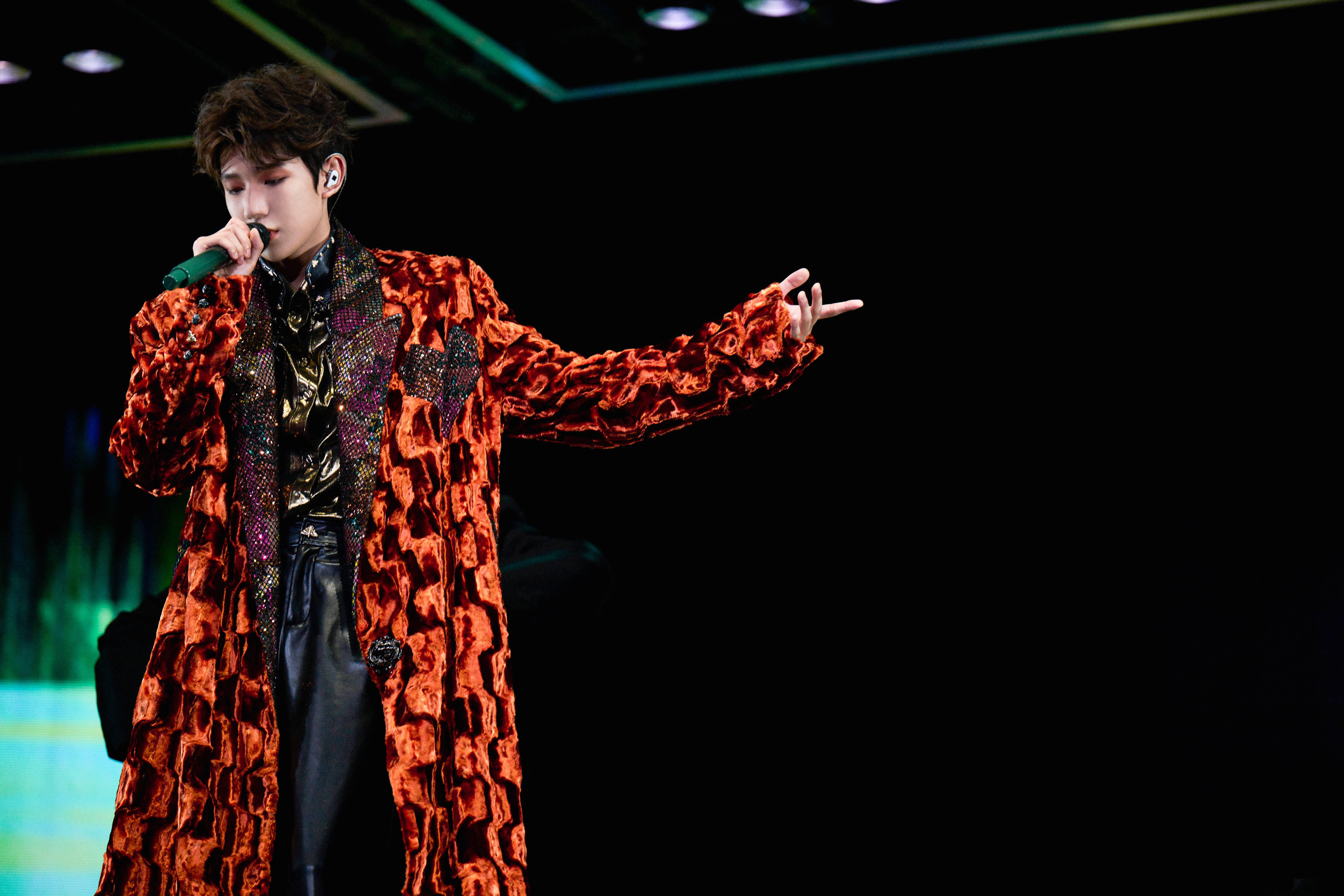 面对这阵仗,王源也是没辙了。他先是故作严肃地板起脸,对着台下说:“下面严肃一点好不好?”可嘴角那藏不住的笑意早就出卖了他。后来实在招架不住粉丝的热情,干脆捂着耳朵“逃跑”似的转过身,那手忙脚乱的样子,像极了被起哄的邻家大男孩,可爱得让人忍不住跟着笑。不过别看他这样,专业素养还是在线的,调整了一下状态就重新拿起话筒,跟乐队示意后,又投入到演唱中,一点没影响后面的表演。